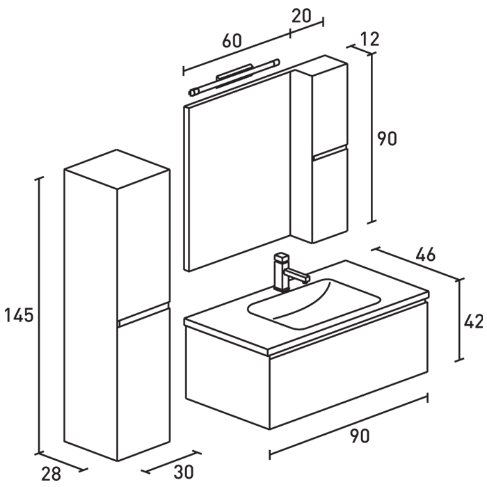 Aνω μέρος καθρέπτης με απλίκα και ντουλάπι (δεξί ή αριστερό)