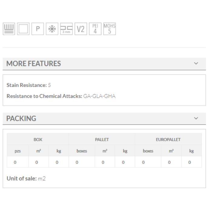Ανθεκτικό σε λεκέδες (βαθμός 5), χημικά (GA-GLA-GHA) και παγετό, με PEI IV και V2 variation, είναι κατάλληλο για δάπεδα και τοίχους σε οικιακούς και επαγγελματικούς χώρους. Η τοποθέτηση συνιστάται με αρμό 3mm για καλύτερη εφαρμογή και αισθητική.