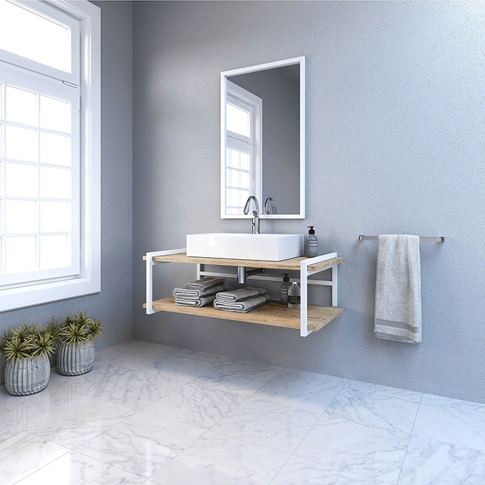Βάση Μεταλλική με Καπάκια Μασίφ Δρυς Ρουστίκ │ Νιπτήρας ISVEA 060 │ Καθρέπτης
