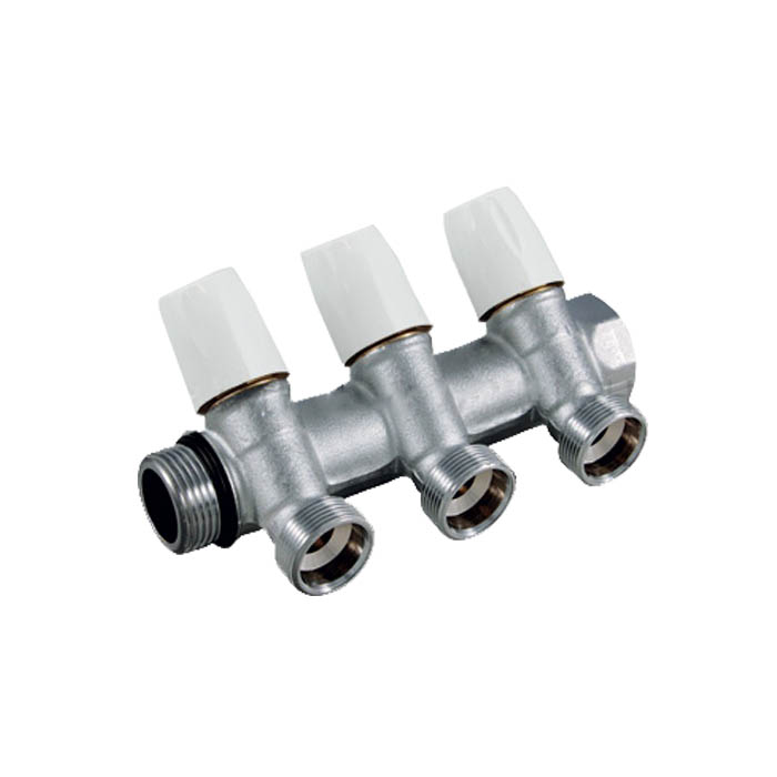 Ορειχάλκινοι συλλέκτες CW617N Maxima με ρυθμιστικούς διακόπτες, επιχρωμιωμένοι, με παροχές 24x19 Ø18. Απόσταση μεταξύ κέντρων των εξόδων 36 mm. Αυτοστεγανοποιούμενο σπείρωμα με O-ring