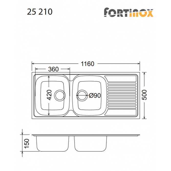 Fortinox Valley 25210 116x50 cm Αντιστρεφόμενος Λείος Ένθετος Νεροχύτης