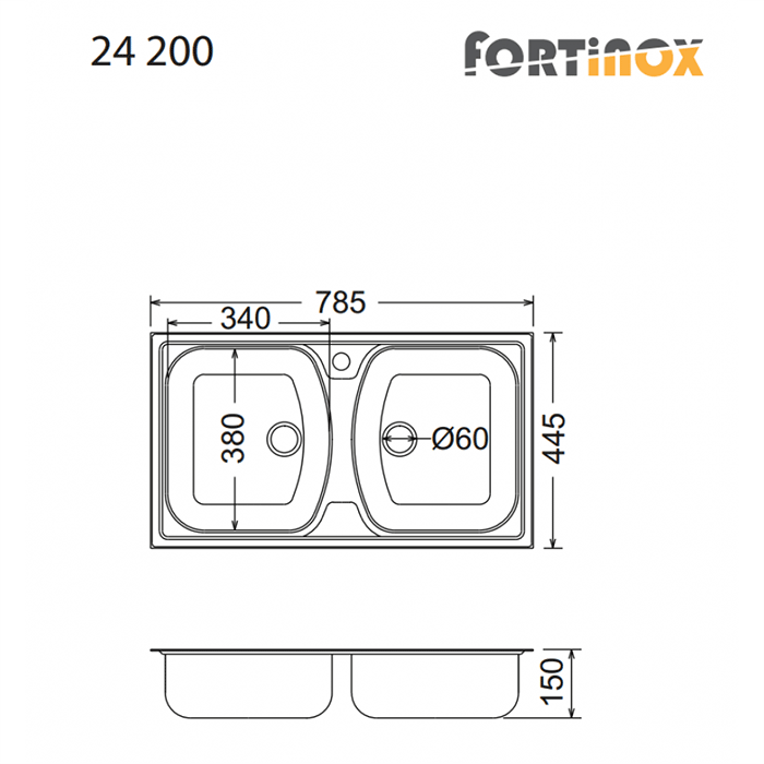Fortinox Slender 24200 78,5x44,5 cm Λείος Ένθετος Νεροχύτης