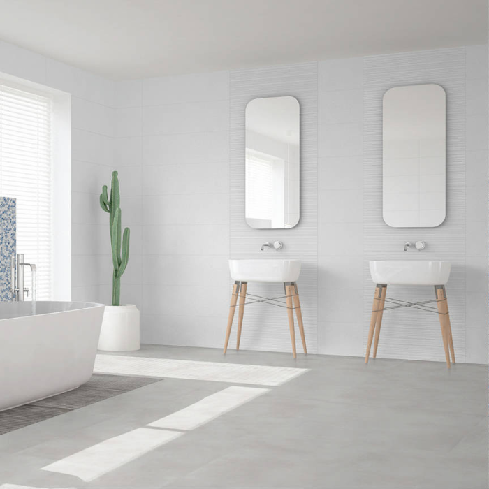 Λειτουργεί είτε ως statement κομμάτι σε έναν τοίχο είτε ως εντυπωσιακός συνδυασμός με τα βασικά λευκά πλακίδια της ίδιας σειράς.