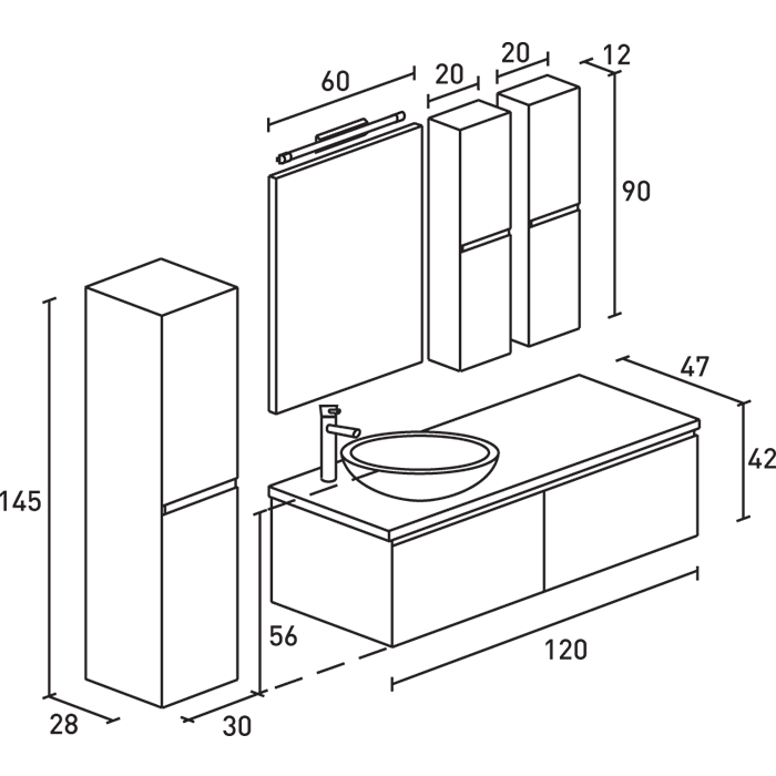 Το Έπιπλο Κέβης 905A ProBagno 120cm, είναι κατασκευασμένο από πολύ ανθεκτκό ξύλο και ο νιπτήρας του από κρύσταλλο