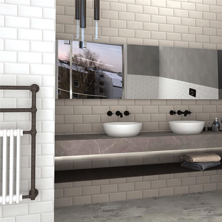 Listello embossed tiles are a trend in the bathroom. They are available in many colors on the market and are the ideal choice in designs with modern bathroom tiles. In this bathroom, listello tiles have been installed, perpendicular to the shower area. Tiled tiles have been chosen on the floor, to complete the scene and to give an extra finesse to the space. The trend in modern bathroom tiles requires the placement of different designs on tiles, so that it becomes a mix & match.
