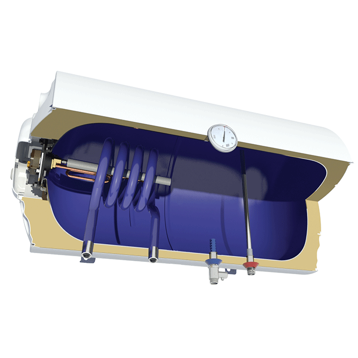 Η δεξαμενή αποθήκευσης νερού είναι κατασκευασμένη από χάλυβα με ειδική επισμάλτωση. Ιδανικοί για τη σύνδεση με την κεντρική θέρμανση (καλοριφέρ).