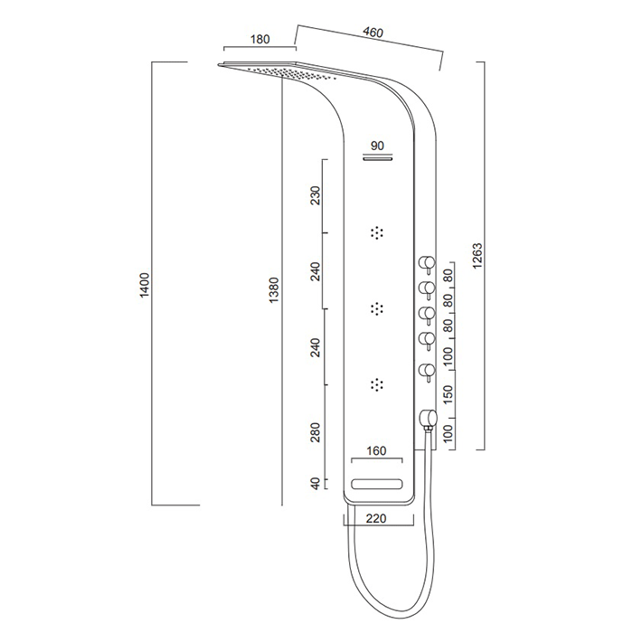 • Έξοδοι : ντους κεφαλής 'anticalcare' , καταρράκτης αυχένα , 3 jet υδρομασάζ 'anticalcare'  & τηλέφωνο ντους 'anticalcare'