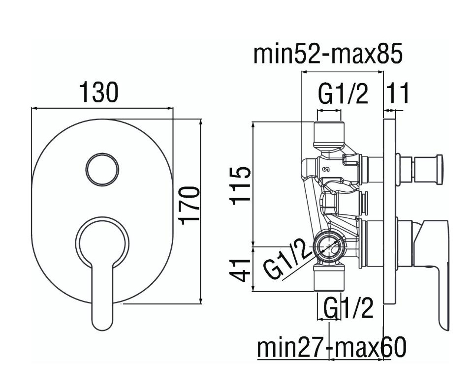 Μίκτης εντοιχισμού, με εκτροπέα 2 εξόδων