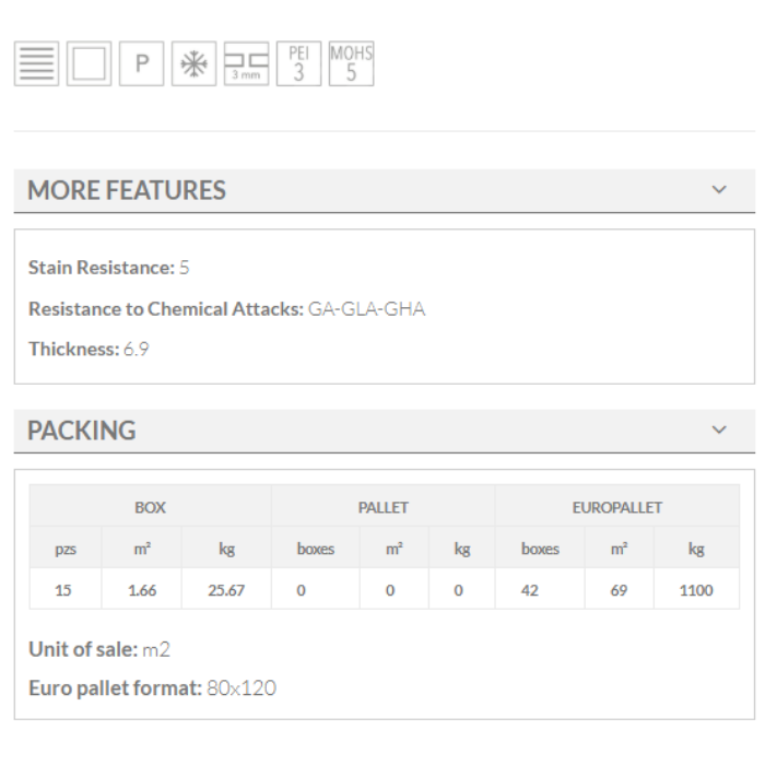 • Τετραγωνικά μέτρα / κιβώτιο: 1,66