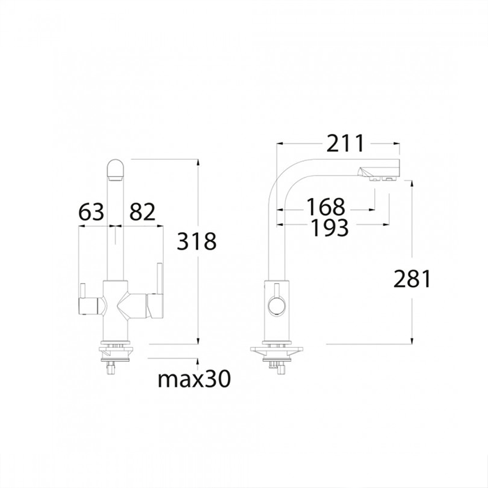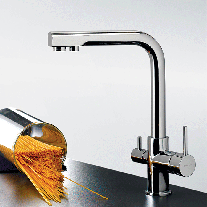 Χαρακτηριστικά: Με περιστρεφόμενο ρουξούνι. Με 2 εξόδους και 3 παροχές, για σύνδεση με φίλτρο πόσιμου νερού αντίστροφης όσμωσης. Στόμιο 1: έξοδος νερού ύδρευσης (ζεστό - κρύο). Στόμιο 2: έξοδος πόσιμου νερού. Εκτροπέας: εναλλαγή μεταξύ των δύο στομίων