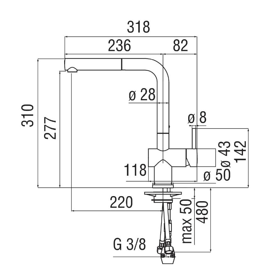 Μπαταρία νεροχύτη με περιστρεφόμενο ρουξούνι και συρόμενο τηλέφωνο