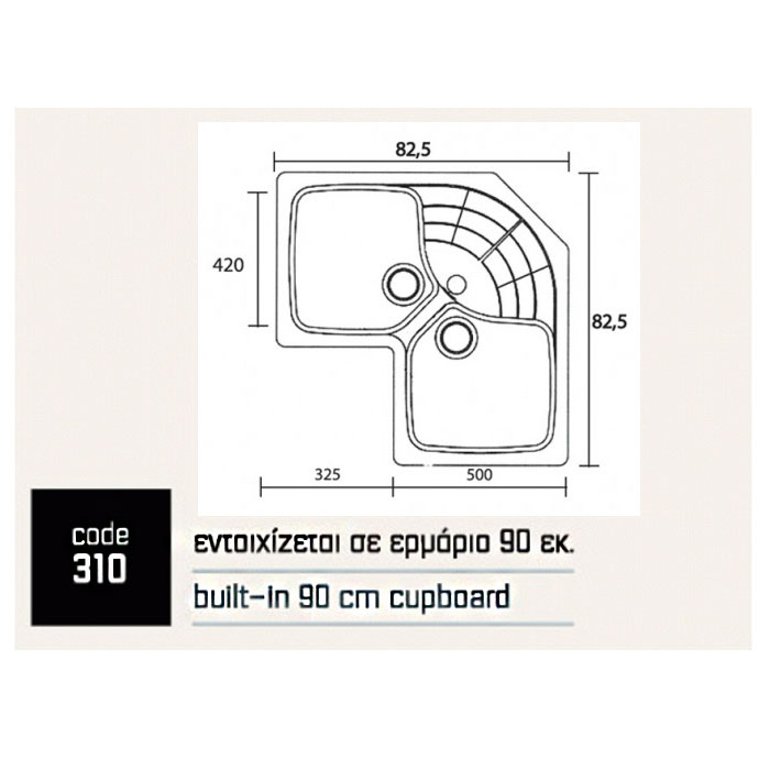 Εντοιχίζεται σε γωνιακά ερμάρια 90 εκ.