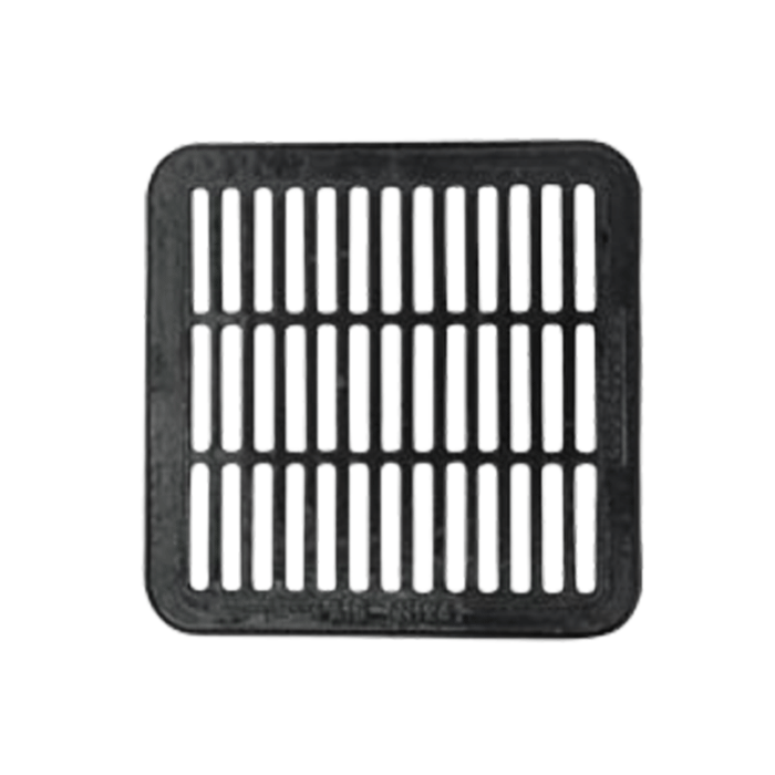 Σχάρες ομβρίων υδάτων σε διάφορες διαστάσεις τετράγωνες ή ορθογώνες με διπλό αυλάκι στο πλαίσιο κατασκευασμένες από φαιό χυτοσίδηρο GG20.