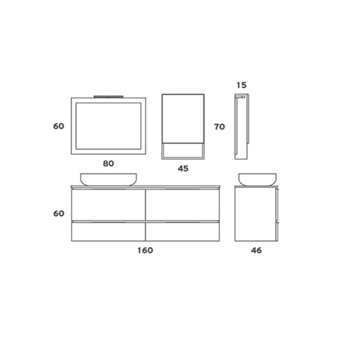 Βάση+Καπάκι Μελαμ. │ Νιπτήρας TOP 060 │ Καθρέπτης Μελαμ. │ Ντουλάπι Καθρ. Μελαμ. │ Φωτιστικό 4502